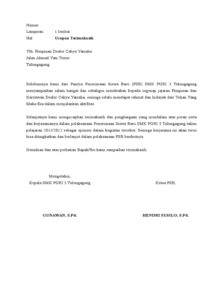 Surat ucapan terima kasih adalah surat yang dibuat oleh seseorang atau sekelompok orang yang bertujuan untuk menyatakan terima kasih kepada Surat terima kasih terima kasih untuk. Contoh surat ucapan terima kasih kepada sponsor contoh 1. Membangun Citra atau Nama Baik Perusahaan.